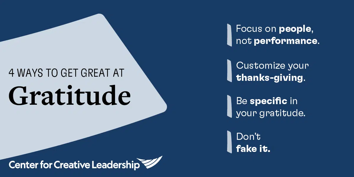 Authentic leadership and showing vulnerability are key parts of gratitude in leadership. If you can’t think of anything you’re truly grateful for, don’t try to fake it. Most people can tell when an expression of thanks isn’t heartfelt, and expressing an insincere gratitude at work is probably worse than showing none at all.